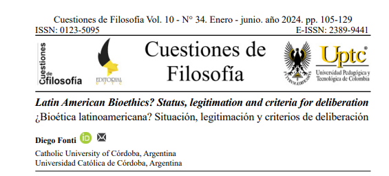 Fonti, D. (2024). ¿Bioética latinoamericana? Situación, legitimación y criterios de deliberación. Cuestiones de Filosofía, 10(34), 105–129. (PDF en repositorio CONICET).