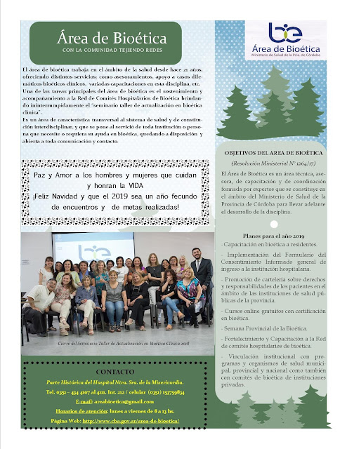 ÁREA DE BIOÉTICA. SALUDOS DE FIN DE AÑO