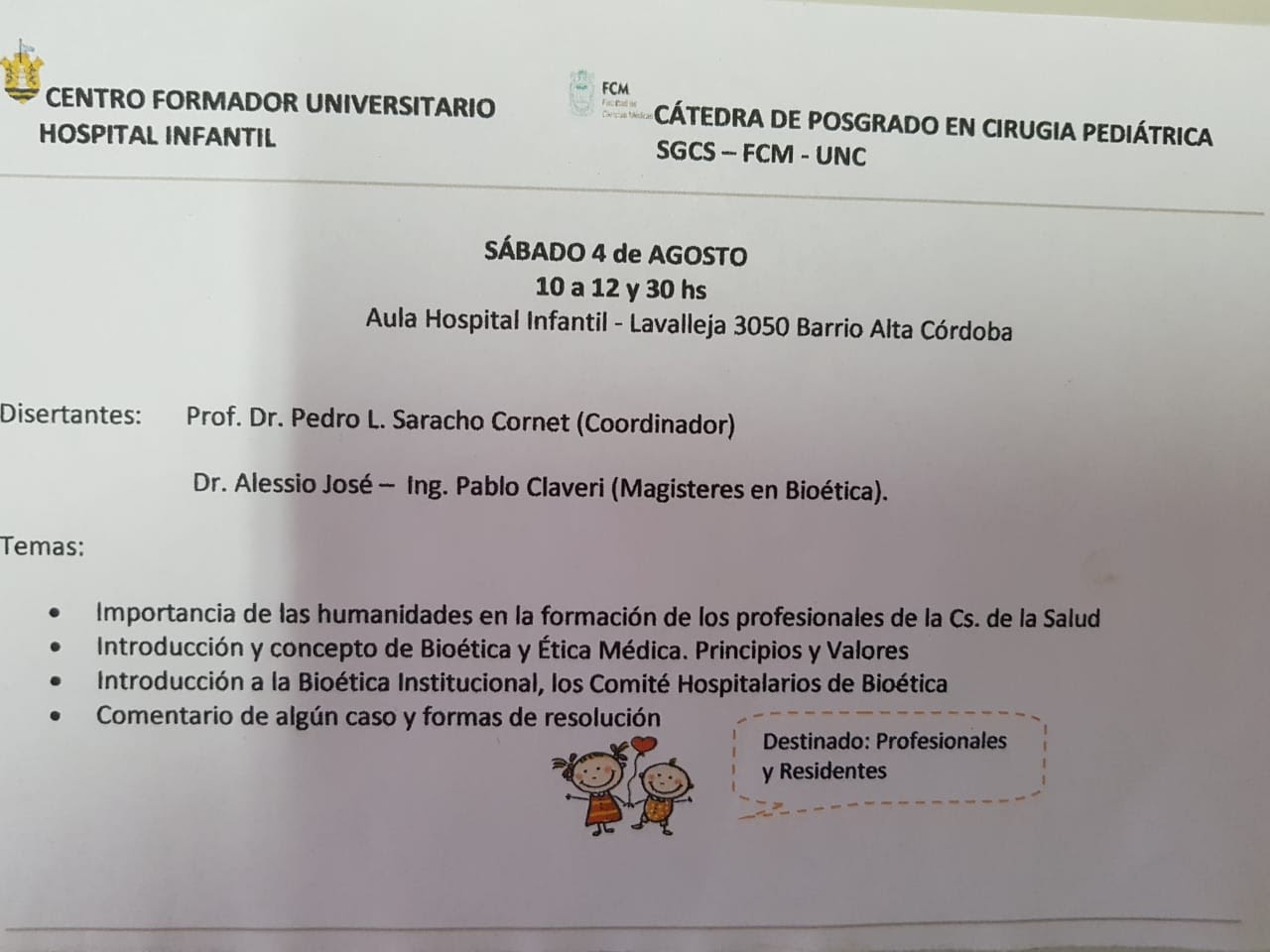 El Lunes 27 de Agosto, el Área de Bioética, tuvo la charla con los 6tos. años del colegio secundario Instituto Sarmiento del Barrio San Vicente de Córdoba.