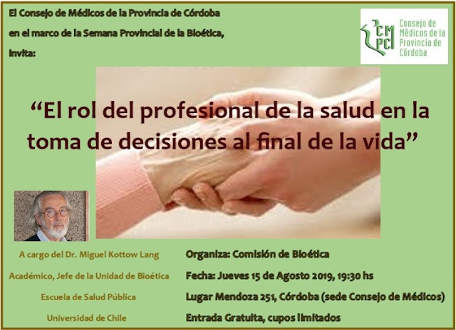 Desde el Consejo de Médicos de la Provincia de Córdoba vamos a establecer una línea de consulta permanente, con expertos en bioética, para el eventual asesoramiento y apoyo al personal actuante.