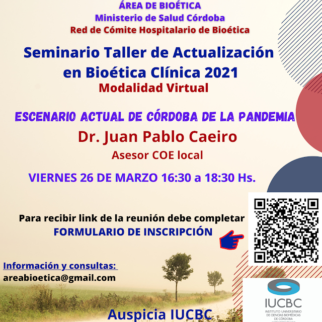 Primera Reunión de Seminario Taller de Actualización en Bioética Clínica 2021. Escenario local de la Pandemia. Dr. Juan Pablo Caeiro Deje un comentario FORMULARIO DE INSCRIPCIÓN https://docs.google.com/forms/d/e/1FAIpQLSftM_Vh0gm5LGhWFZcuZzVGL1B0wGNitFVbuhfLnA8KC3dMHA/viewform