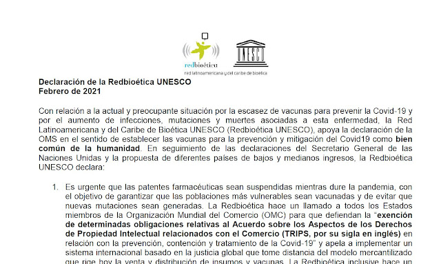 Pronunciamiento de la Redbioética Unesco sobre situación en Brasil
