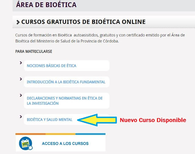 De paso, también informarles, que ya están abiertos los tres cursos que el Área de Bioética ya tenía abiertos, con materiales renovados e incorporando nuevos elementos, para una mayor calidad educativa de esta propuesta formativa en bioética.