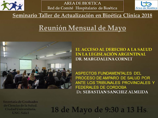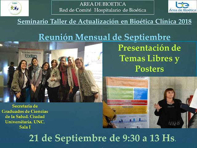 En la Segunda Jornadas del Seminario Taller de Capacitación en Bioética, organizada por el comité de bioética del Hospital San Antonio de Padua de la ciudad de Río IV, el Área de Bioética, los acompaño en la actividad que consistió en la presentación de dos casos bioéticos, que junto con el auditorio, se realizó una sección abierta del comité de bioética.