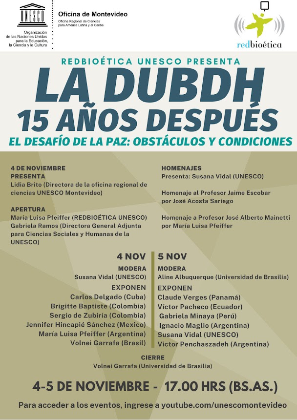 “A 20 años de la Declaración Universal sobre Bioética y DDHH: Vulnerabilidad y responsabilidad social, diálogos y reflexiones para construir herramientas de acción